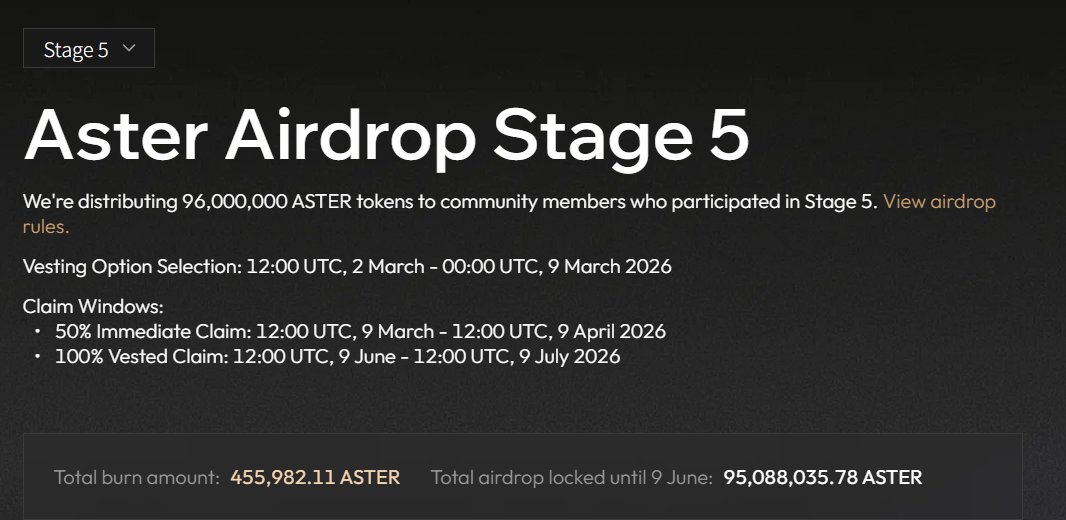 911,964.22 $ASTER 已作为 Aster @Aster_DEX 空投第五阶段分配的一部分进行结算,其中 455,982.11 $ASTER 已永久销毁,455,982.11 $ASTER 已转移到 Aster 国库合约。