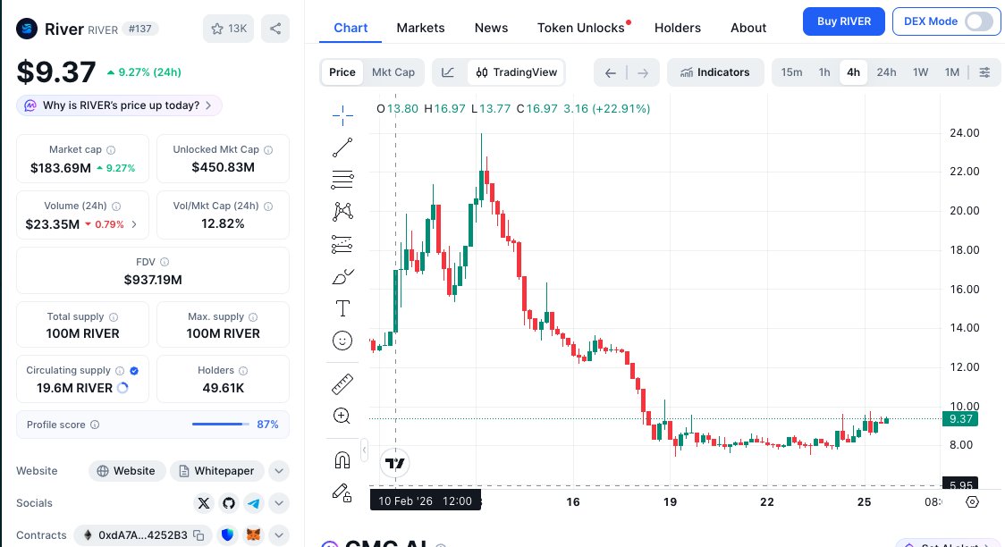 目前一个 $RIVER 9U左右,3月开始就会有之前大规模兑换的币解锁,倒是看市场消化情况了🤔