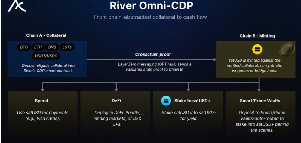 但在 River 体系里,satUSD更像一个流动中枢。