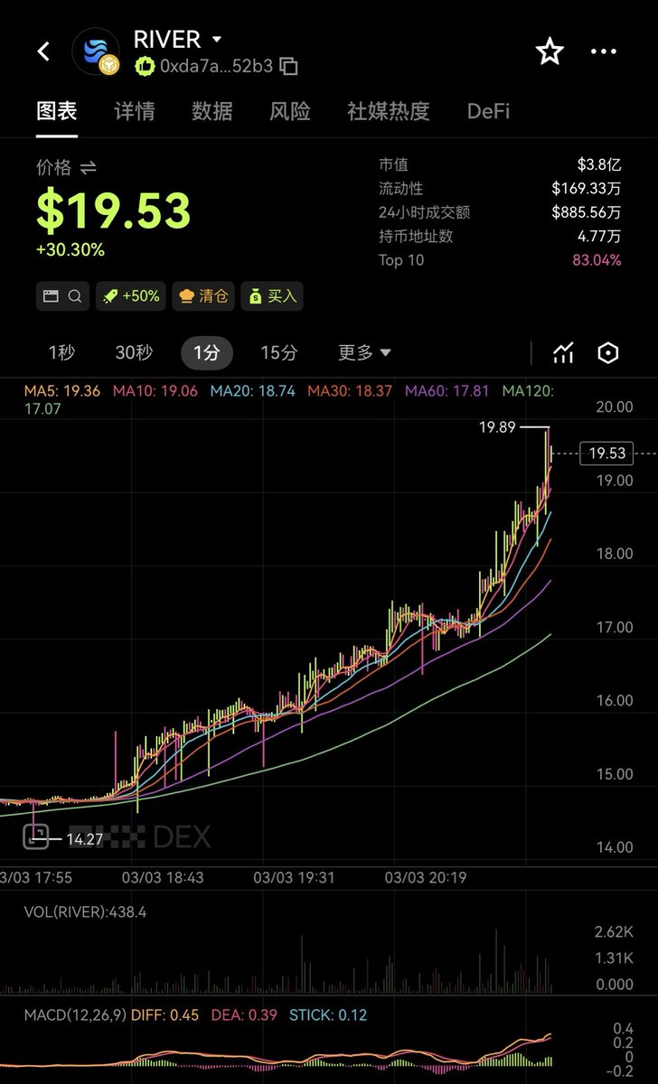 热门代币三 $RIVER$RIVER 今天成为热点主要源于其显著的价格波动和社区活动推动。代币经历了从80U到15U的大幅波动,吸引了投机者关注;同时项目方在妇女节推出了用3800美元RIVER奖励社区互动的活动,有效提升了参与度和话题性。此外,市场对其月底代币解锁存在做空预期,加剧了讨论。这些因素共同推动了交易活跃度和市场关注。
