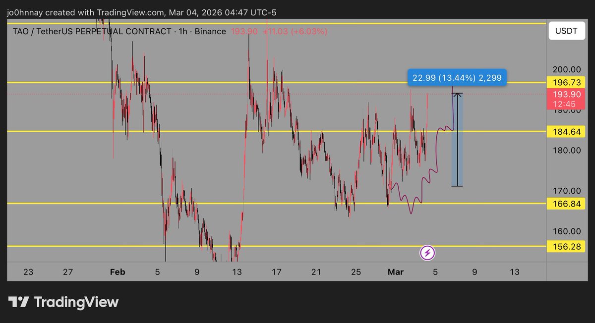 If you had bought the dips in the indicated area, you would already be up 50%. $TAO
