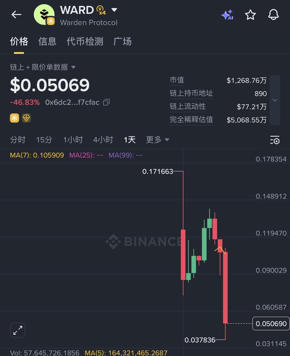 代币 $WARD 今天暴跌50%更是坨上坨