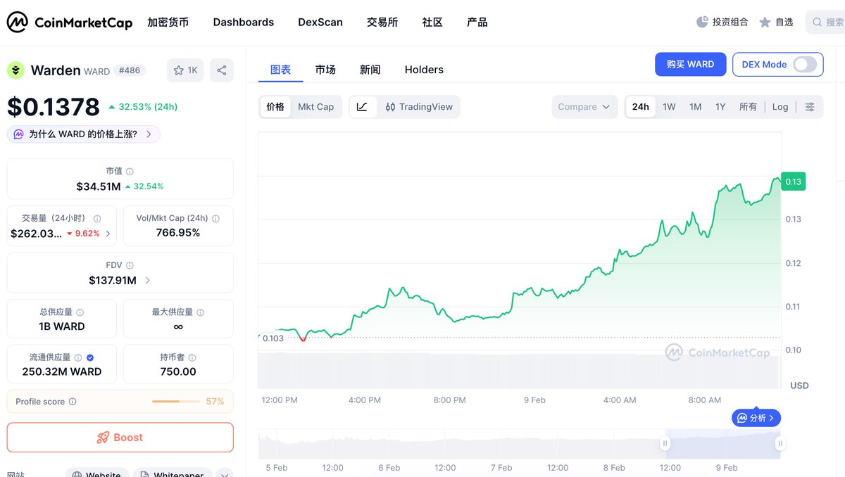 $WARD 今天成为热点主要得益于WEEX交易所正在进行的大规模空投活动(5万美元奖池),直接刺激了市场关注和交易需求。同时,代币背后的Warden协议近期主网上线,且项目方通过延长InfoFi活动季等方式持续运营,维持了社区热度。从市场表现看,$WARD曾在涨幅榜前列出现,价格在0.13U附近震荡,显示已有资金关注,空投预期与项目进展共同推动了短期的市场热度。