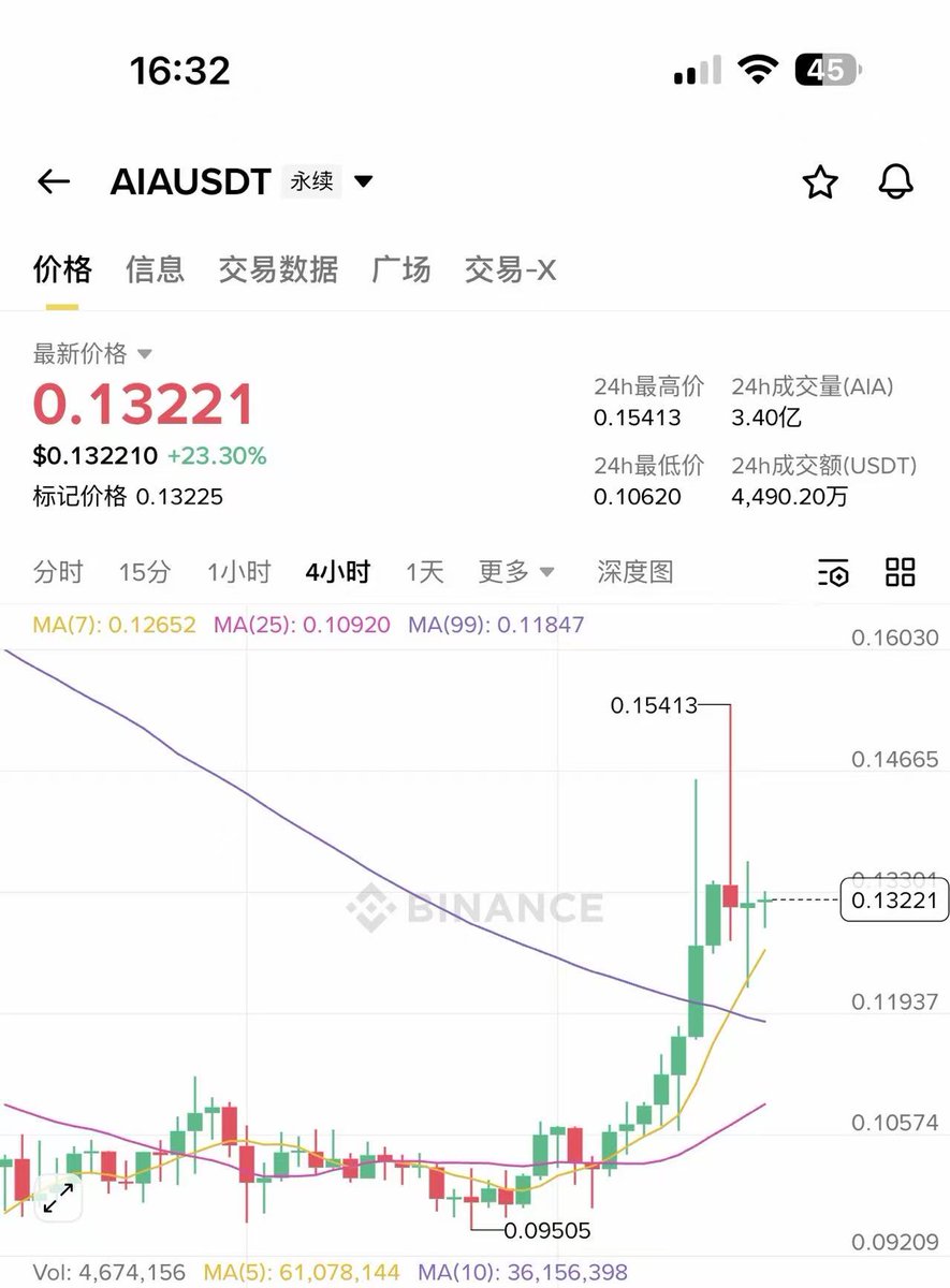 山寨整体不景气的大背景下 这种事件驱动也还是有点机会 比如今这个 盯的紧点,第一个小时都还有机会 之前因为换智能合约下线币安的 $AIA 今天重新上线币安合约 币价从 0.1多直接干到了0.4多 真要是几分钟冲高就下来 大家没反应时间 但重新上线后两小时冲高,就还好 有意思,这币持续关注看后续