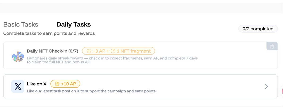 1️⃣ 加入 Waitlist:立即通过我的专属链接加入候补名单并加入 TG 群,不仅有机会赢取 $AP 积分,还能限时免费 mint 创世 NFT!这不仅是荣誉,更是你未来在 Fair Shares 生态中解锁各项权益的关键链上凭证
