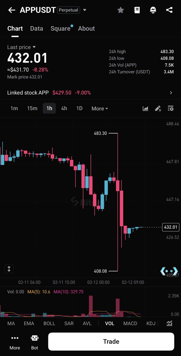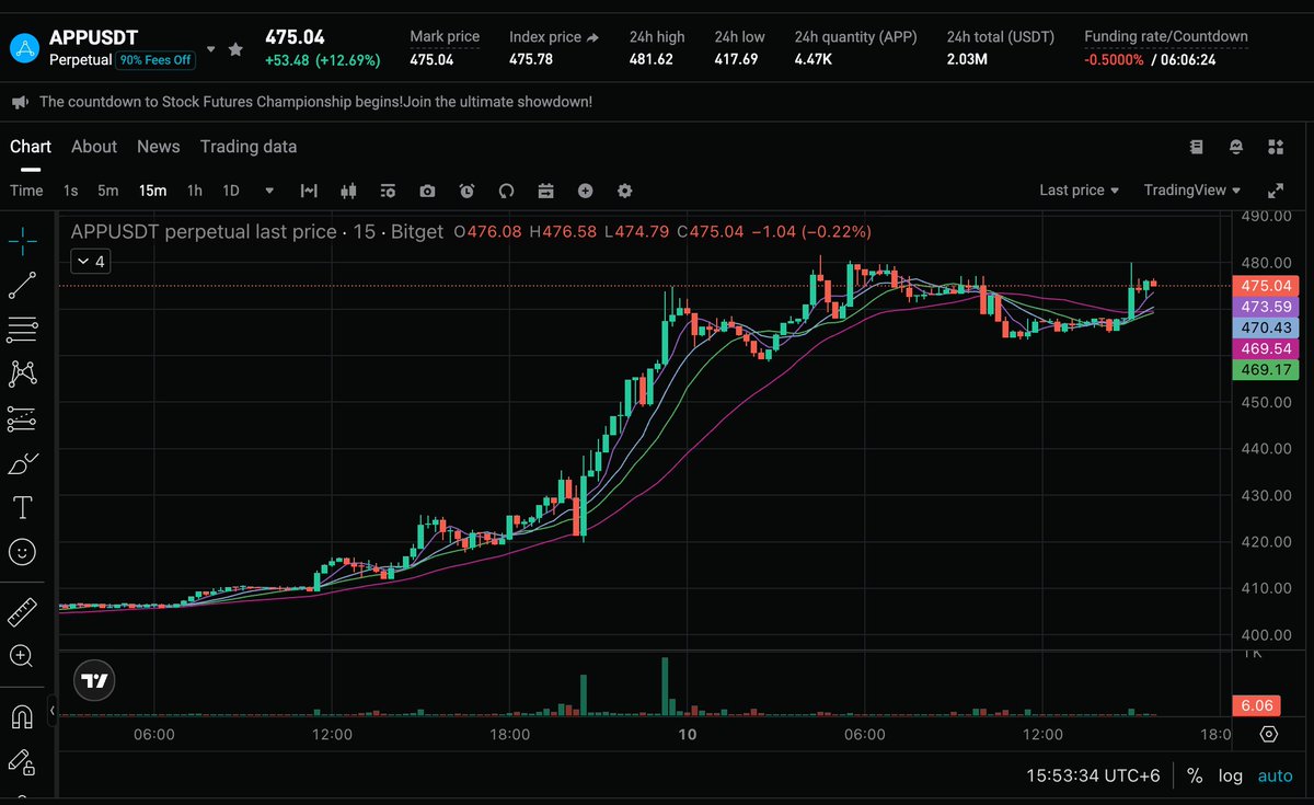 Position your $APP trades with the lowest fees on Bitget stock futures now.
