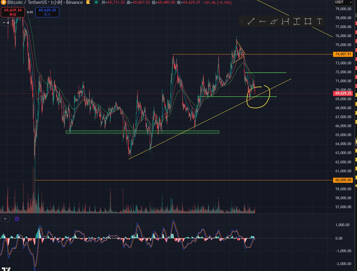 我认为接下来如果 $BTC 去到67-68之间做一个二探+4H底背离后上涨,会是一个理想的剧本