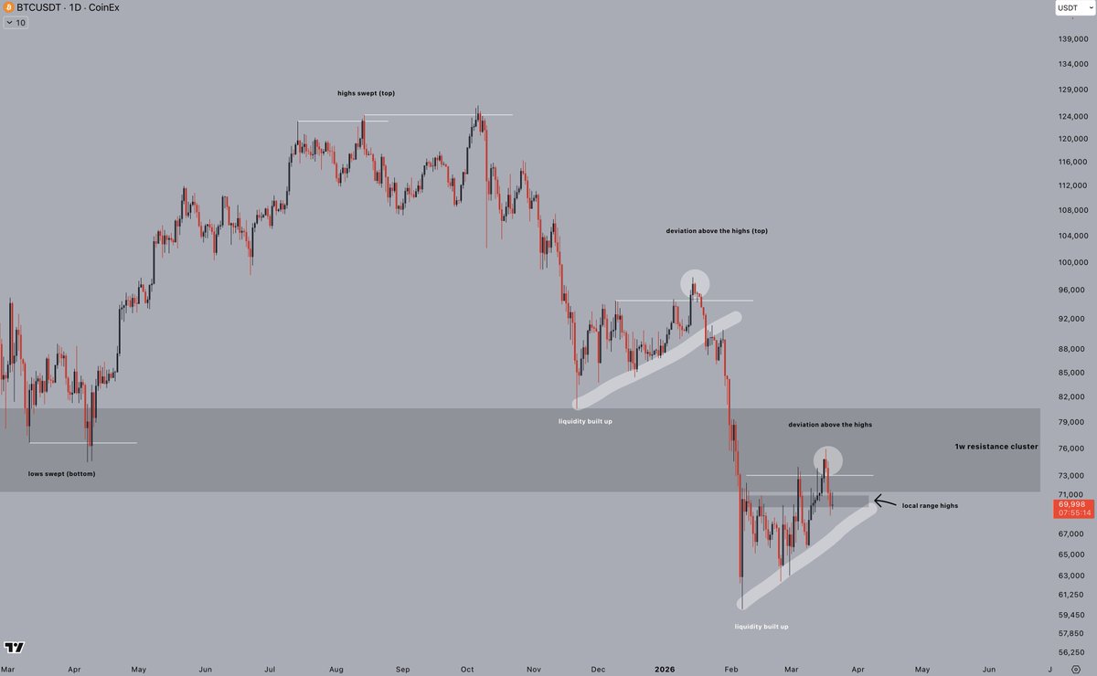 for $BTC In the short term, I don’t see any weaknesses that could trigger a sharp sell-off, so I believe prices could rise further ( If we fall below 65k, we’ll see significant weakness even in the short term )provided Trump and his team don’t mess things up; on the macroeconomic front, the technical picture for $BTC remains very weak, and unless we see structural changes on the weekly chart, this will remain the case