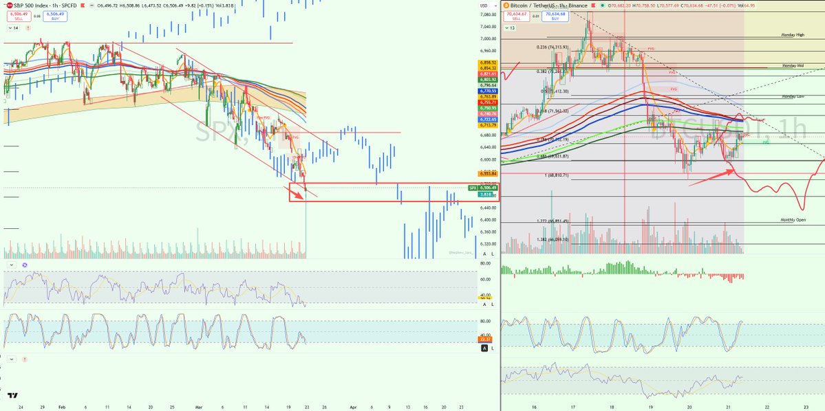 美股同步探底6500(或不探,美股和btc脱节)后反弹一个LH