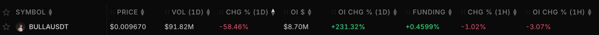这个 $BULLA 比JELLY牛逼之处在于,市值只有9M了而OI还有8.7M,兄弟们你们是想干嘛? 现在bn的合约操盘思路 ,一个比一个吓人😂