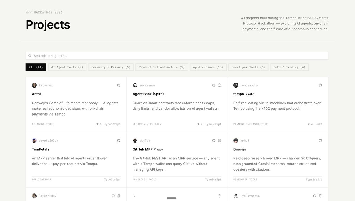 5、Tempo @tempo MPP 黑客马拉松产生了 40 多个项目