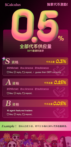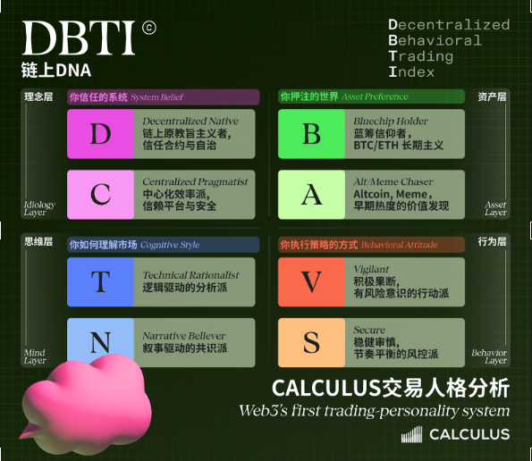 大家也可以按照自己的交易习惯在每一组中选择适合你的类型,看看你符合哪种交易人格,项目目前处于数据积累与模型校准的早期阶段,官方开放了占总量 0.5% 的 $CALCULUS 奖励池用于生态冷启动