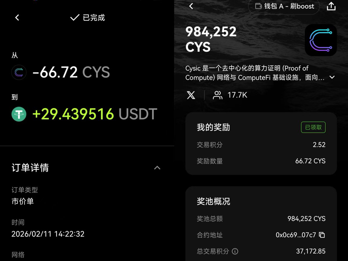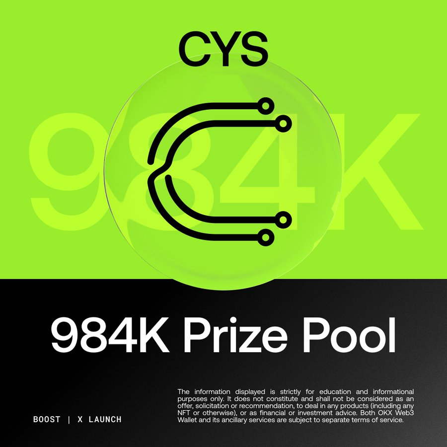 OKX Boost送福利来了。这次上的是@cysic_xyz 984,252 $CYS 价值38万U。根据以往3.5万分算。一分差不多11U。昨天刷了几笔,消耗了10几U。正好赶上了今天的活动。今天申请下,明天就能领