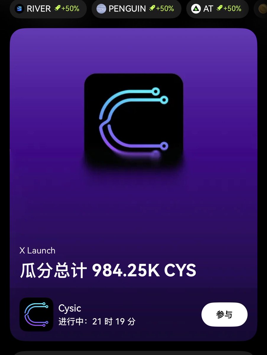 最重要的是团队一直在搞事情, $CYS 不仅添加到OKX钱包,还上线了币安交易大赛!
