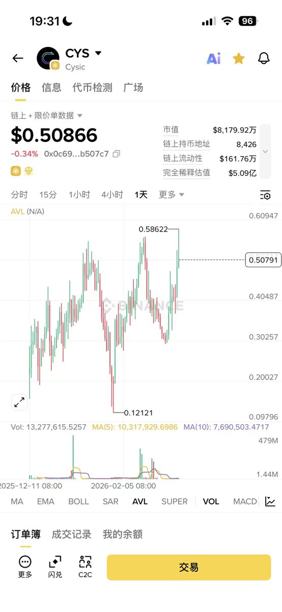 看到子时的推突然想起来自己有个小钱包还有点 $CYS ,虽然没卖到最高点但也很开心了。
