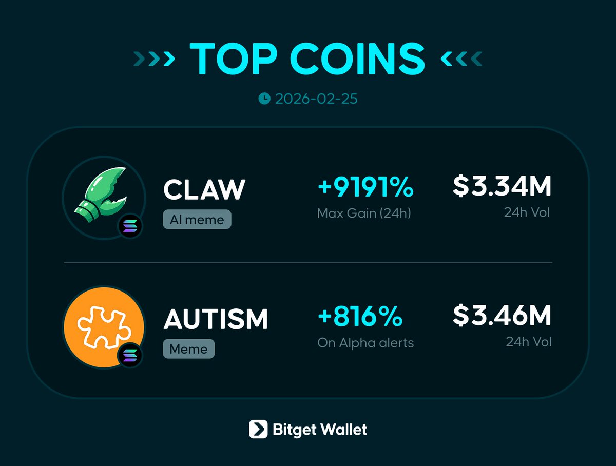 Markets outlook: $BTC & $ETH on a rebound (short-term gains >3%), most alts rose with the tide. 😂 Meme: $AUTISM 🦞 AI Meme: $CLAW Today's top picks: Originating from a really old reddit sub (13 years ago), $AUTISM has a simple narrative & potential viral elements. $CLAW is the governance token of a gas-free launchpad for AI agents on Solana, with potential for a second-wave rally.