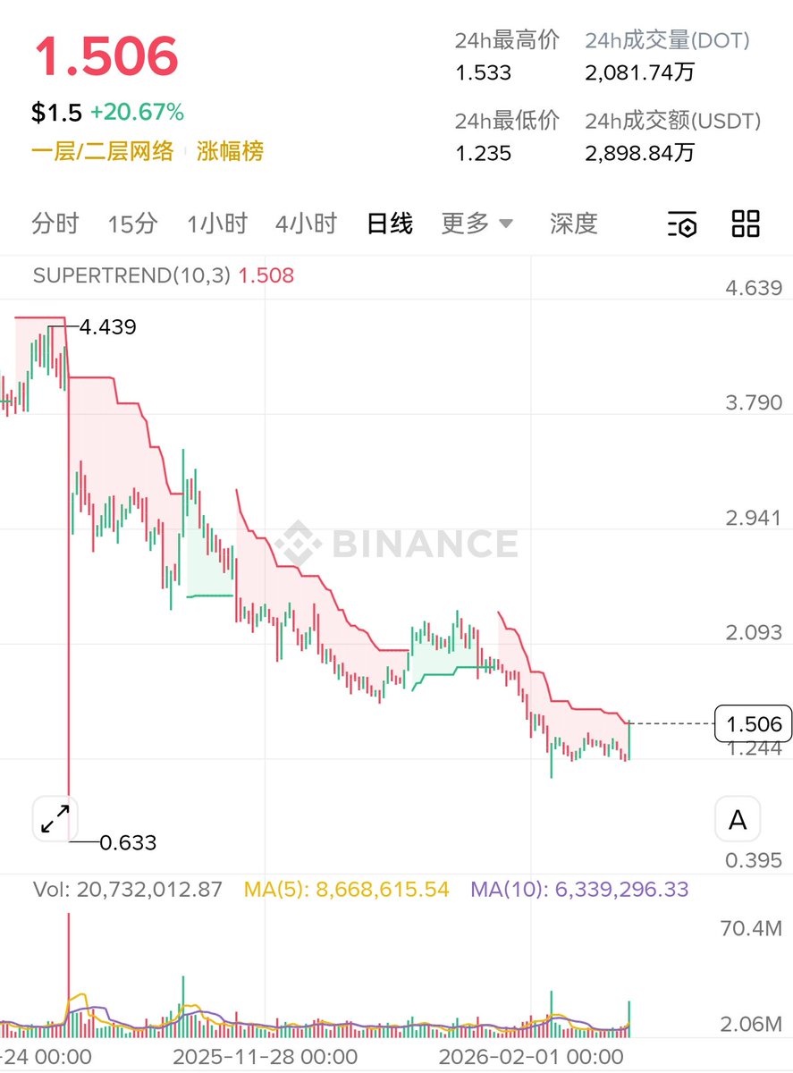 今天老公链里头反弹最猛的竟然是 $DOT ...