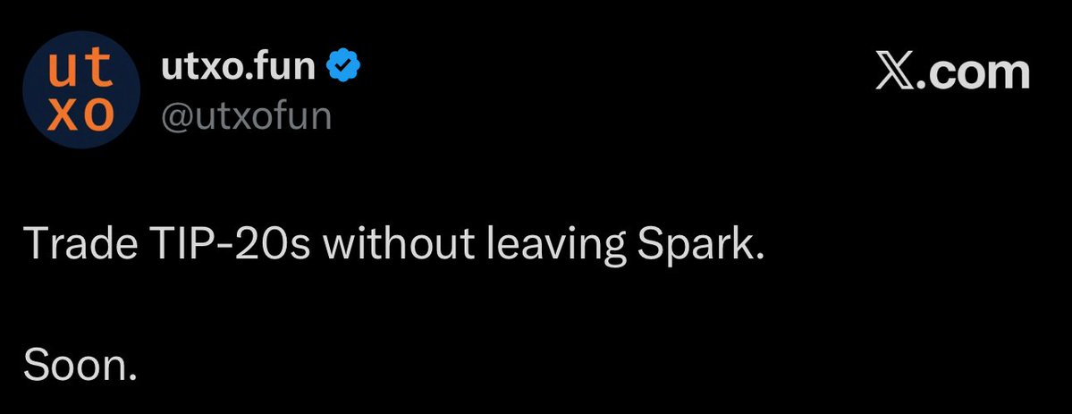 @utxofun 宣布,用户很快可在不离开 Spark 的情况下直接交易 TIP-20 资产。
