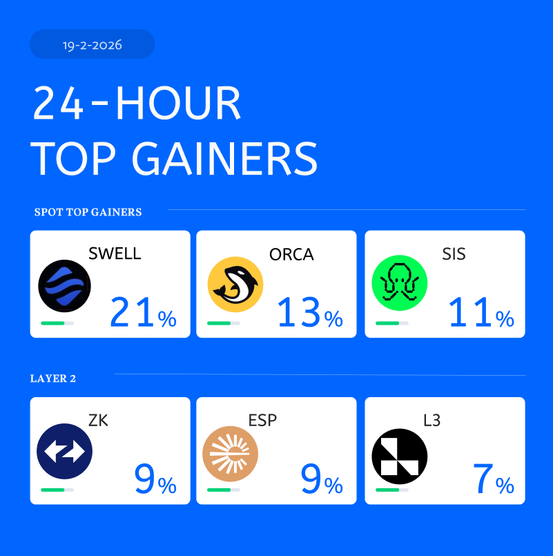 🚀 24H Top 5 Gainers on #KuCoin (February 19, 2026)