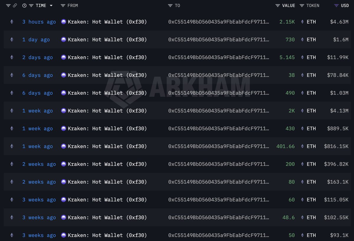 0xC551 withdrew another 2,150 $ETH($4.63M) from Kraken 3 hours ago, and now holds 6,683 $ETH($14.33M).