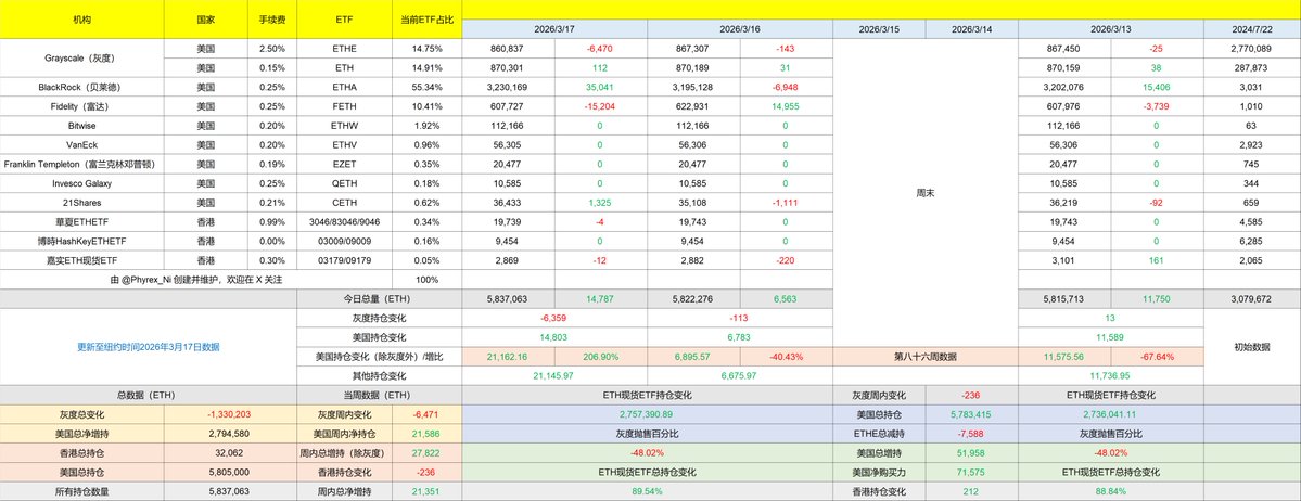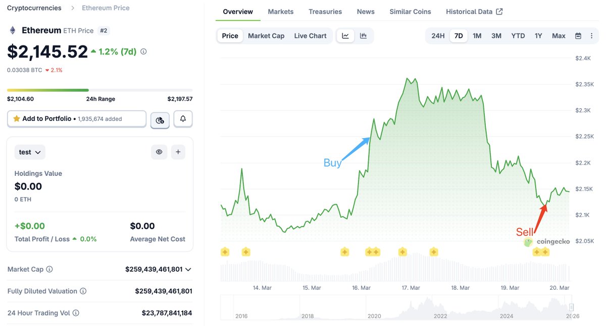 他曾在 03.16 $ETH 大幅反弹时以均价 $2240.1 在链上买入 7768.56 ETH,价值 1740 万美元;过去 10 小时选择在 $2113.77 卖掉了 72% 的持仓,部分割肉,剩余部分已存入 Etherfi,看起来暂时不打算卖了