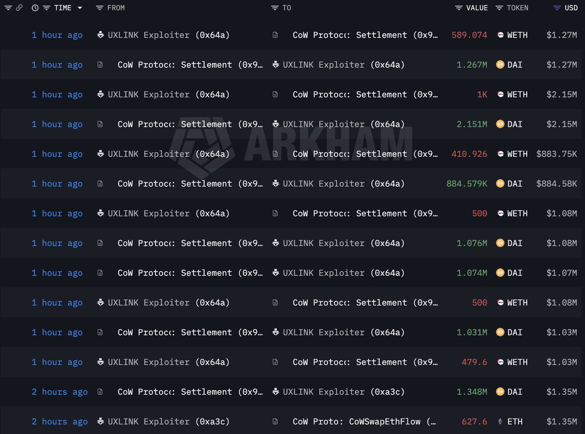 12.PeckShield:UXLINK 攻击者将 5,496枚 ETH 兑换为约 1100 万枚 DAI;