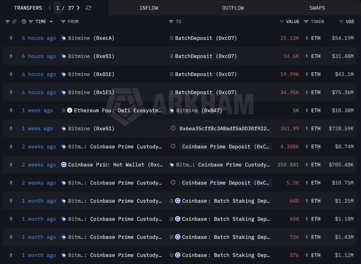 After 1 month, Tom Lee(@fundstrat)'s #Bitmine staked another 94,670 $ETH($204M) 6 hours ago.