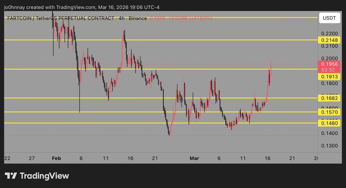 Meme lore: As the market rebounds, $Fartcoin, the og AI-meme surged 34% in 3 days—with whales entering.