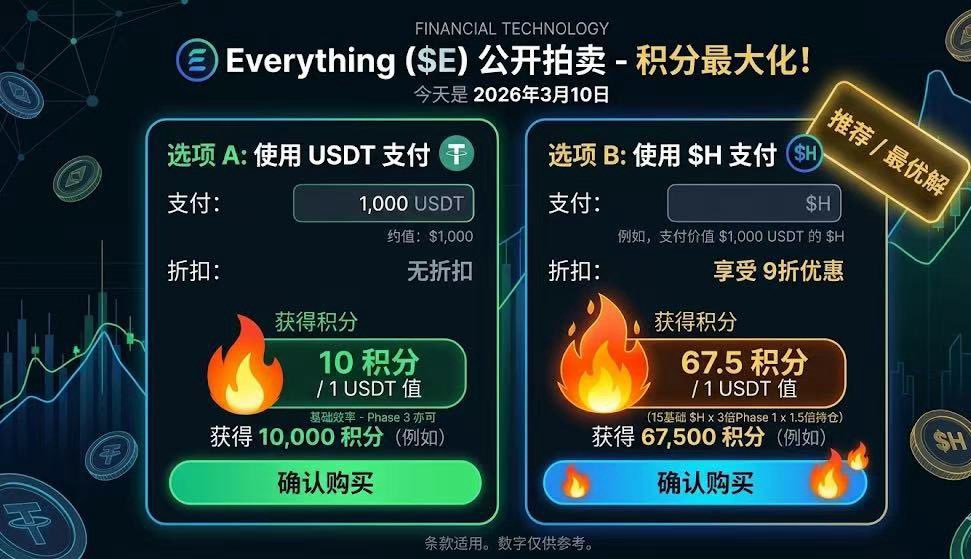 2️⃣ 我实操的“最强积分方案”: 大家如果参与,建议别直接用 USDT。我研究完规则发现,用 $H (Humanity) 认购有 9 折优惠,且积分效率是 USDT 的 1.5 倍。叠加现在 Phase 1 的 3 倍全局加成,这个复利算下来,积分获取速度是非常惊人的。