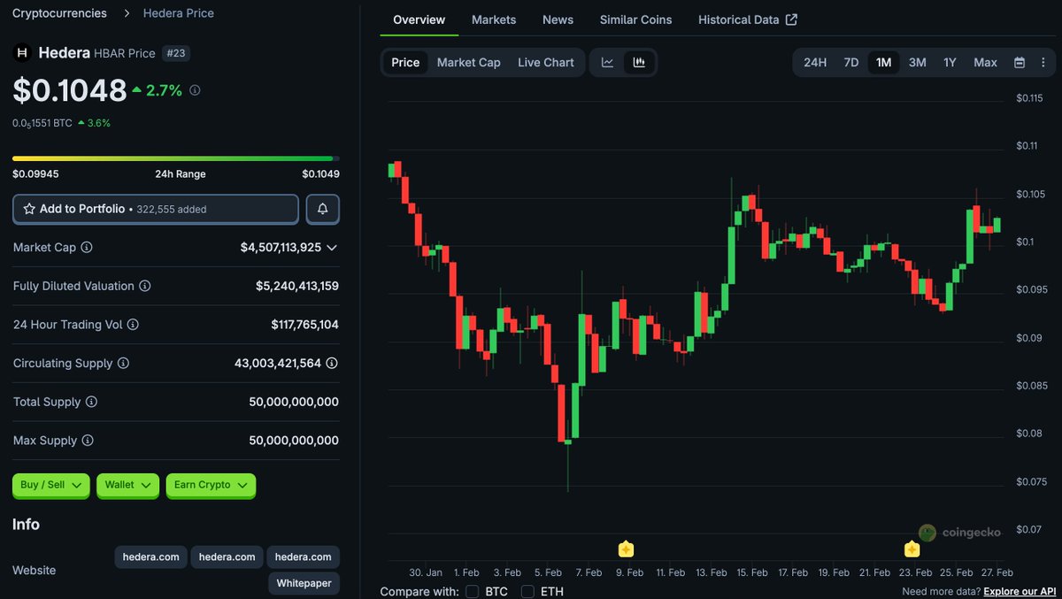 🟢 $HBAR rockets on ETF debut
