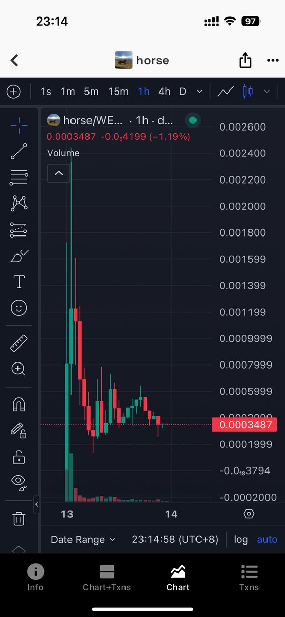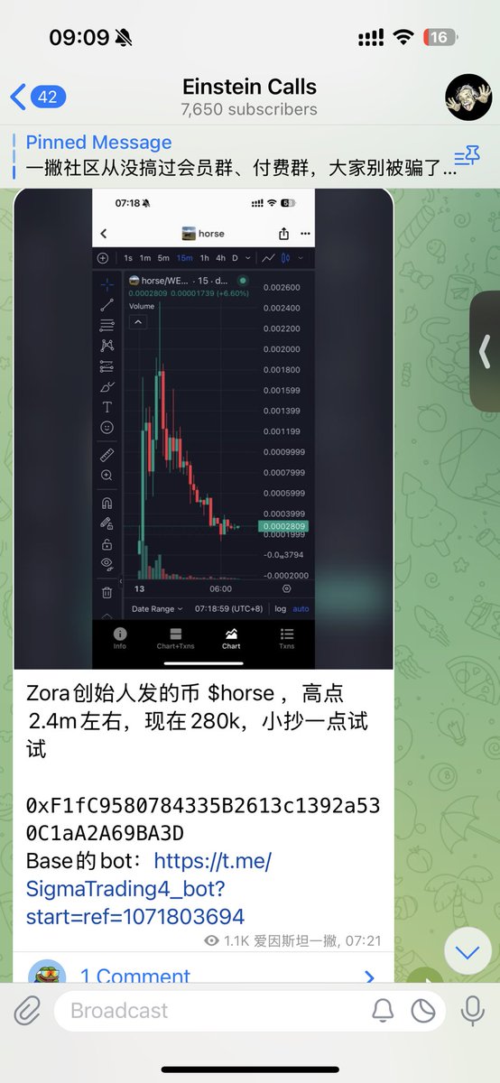早上280k tg频道喊抄底@zora 创始人发的币 $horse 最高反弹到800k左右,出本之后现在又砸到300多k了,@base 链上这些创始人的影响力一言难尽啊😂