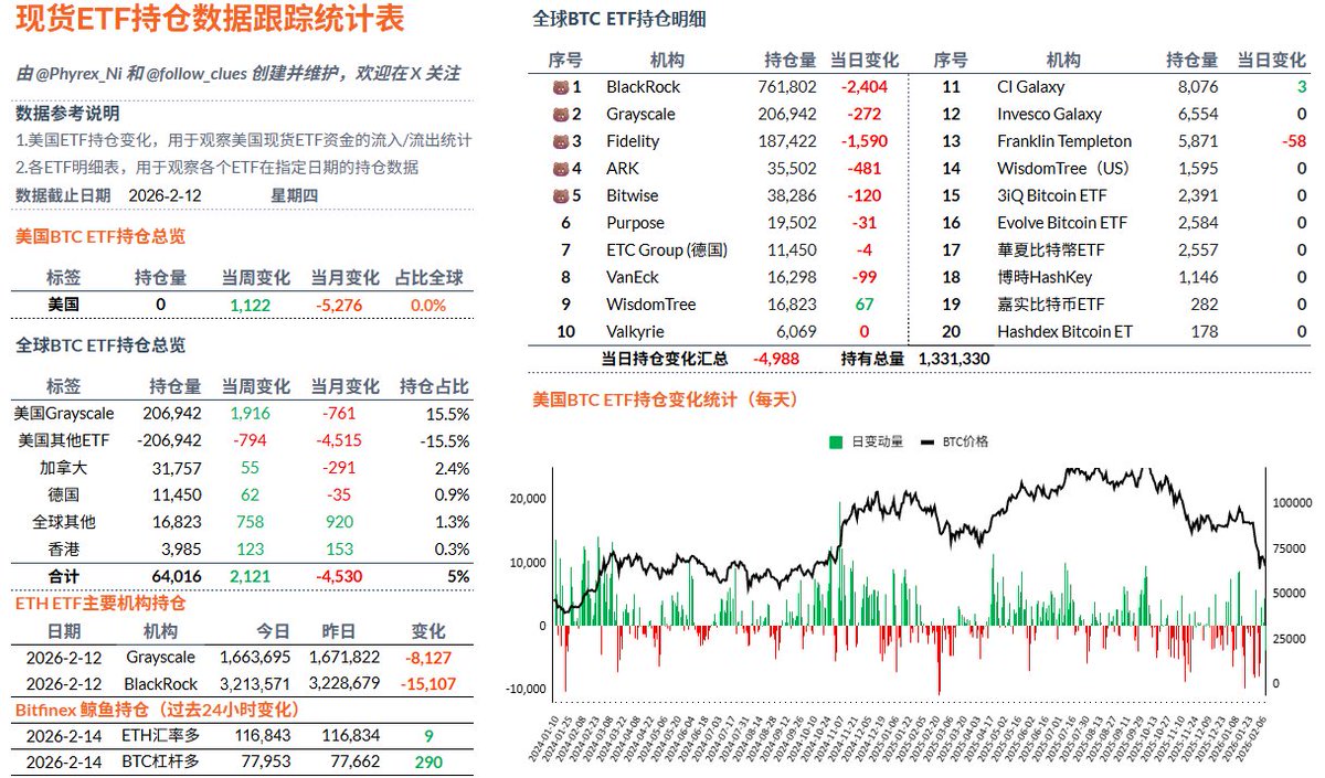 因此,我更倾向于把这次波动理解为 ETF 二级市场压力是市场结构中的一环,但决定跌幅级别的仍然是整体杠杆结构与流动性状态,而不是 IBIT 一级市场的赎回行为。