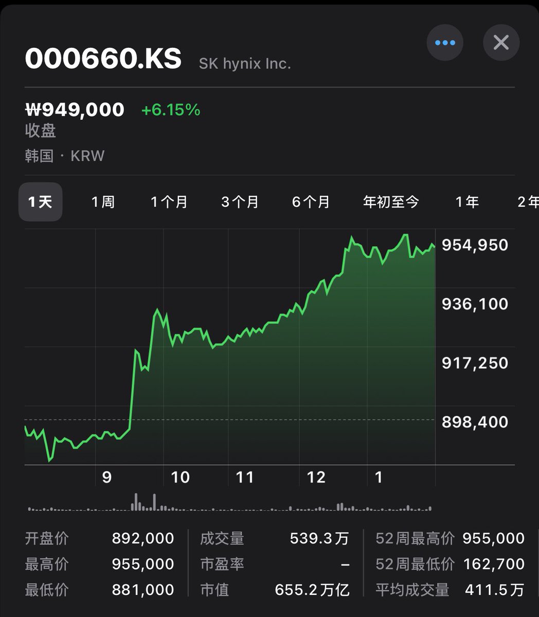 出于整个AI行业已经狂奔一俩年,有没有市盈率更低更安全的同美光一样处于存储行业的股票?很显然有,三星和海力士。