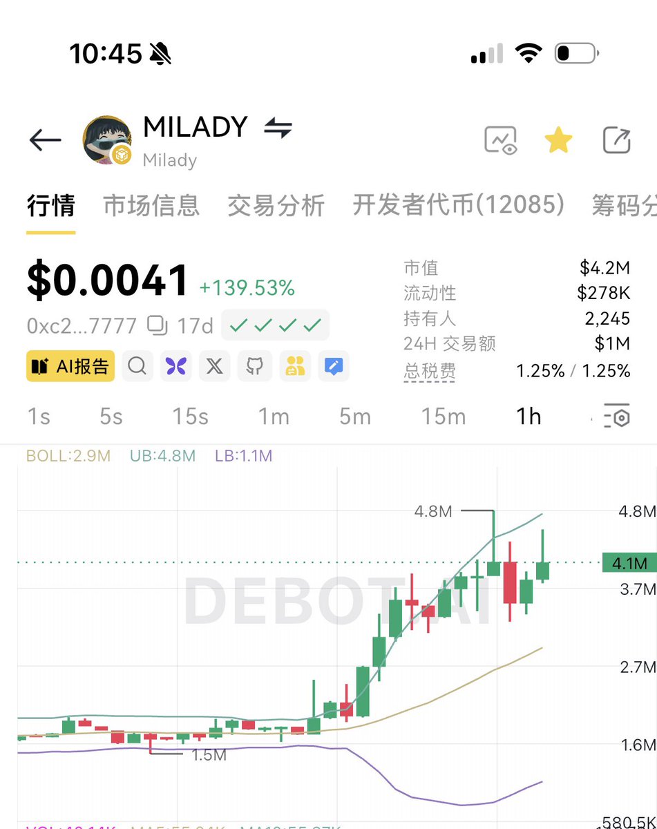 然后再说说这个 $MILADY ,这个破币,破几把名儿,我照着打都费劲,天天就叫这是AI技术币,这BSC要发展AI,你就得推荐这种币,这种币推荐了,那才有助于BSC发展AI,几把的,你们买这个币的扪心自问,这个鸟玩意儿实际的Ai项目你们用过么?它那个AI代理代理出啥来了?这个项目本身有啥实用性么?那不还是之前那些玩意儿,闹个小人儿,在那晃来晃去的,有几把用啊?这个币又有啥实际作用?现在的AI技术币,早就不是之前挂羊肉卖狗肉的时候了,还当那么好骗呢?随便闹几个代码,捣鼓个小人儿在那晃老晃去就能晃几千万美金市值?那交易所里那么多AI币,就说Ai16Z(现在改名了改成E啥OS啥的了)那天我一看,才900万市值,那丝袜天天在那丝,也才700万市值,还有一大堆上了现货的牛逼加闪电的AI币,流通市值也就45千万,你说这么个玩意儿,几把用也没有,也没啥新技术,还是之前那一套,就在那闹个小人儿瞎几把晃,它能市值到哪?到了1000万谁几把接盘,就这玩意儿上了Alpha必跌回300万,因为它整不出啥新东西来,那玩意儿也没几把用,也没几把人用,以后的AI不是瞎忽悠人的时候了,得真有用才行。