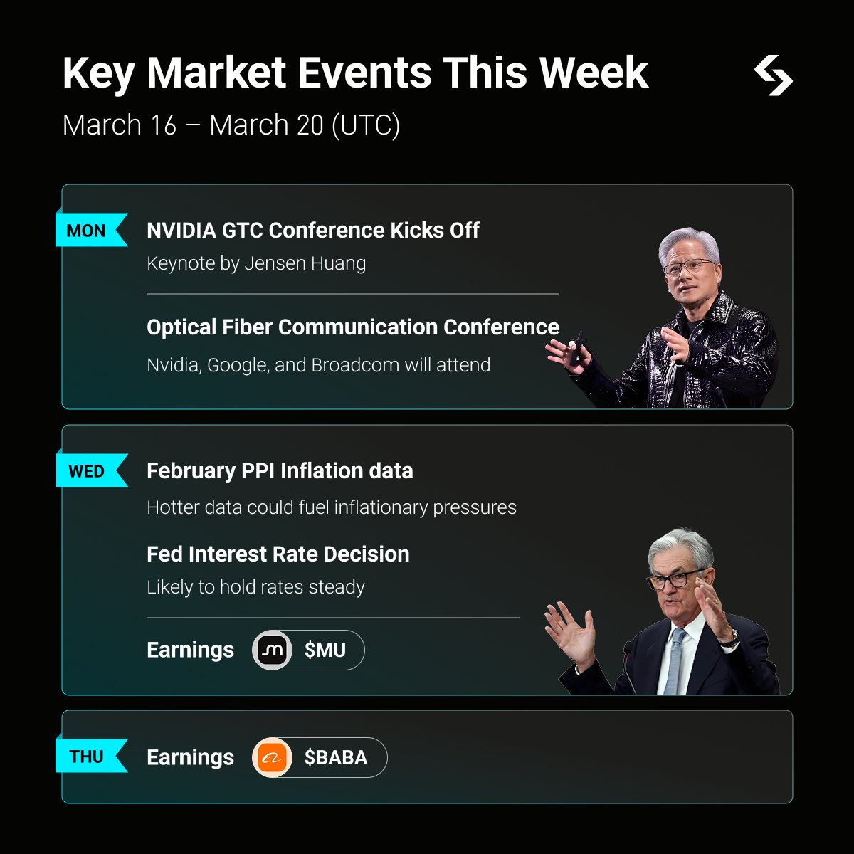 Watch out for $MU, $TSM, $INTC and more as $NVDA kicks off their GTC event in a few hours.