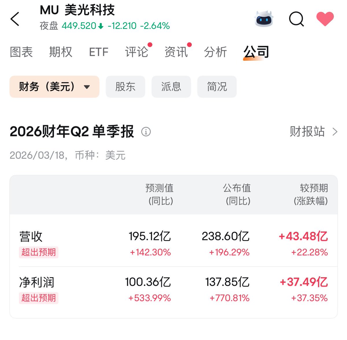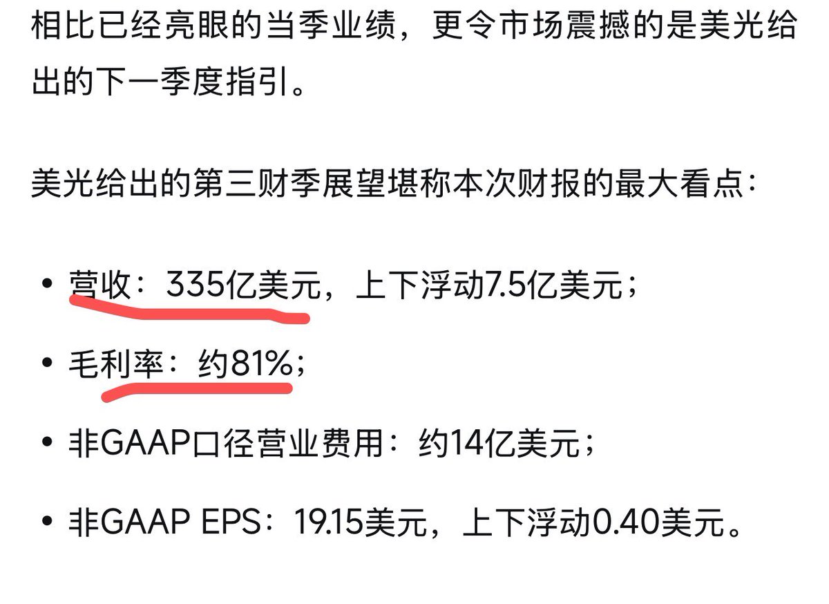 按照美光 $MU 今天给出的q2的业绩指引,