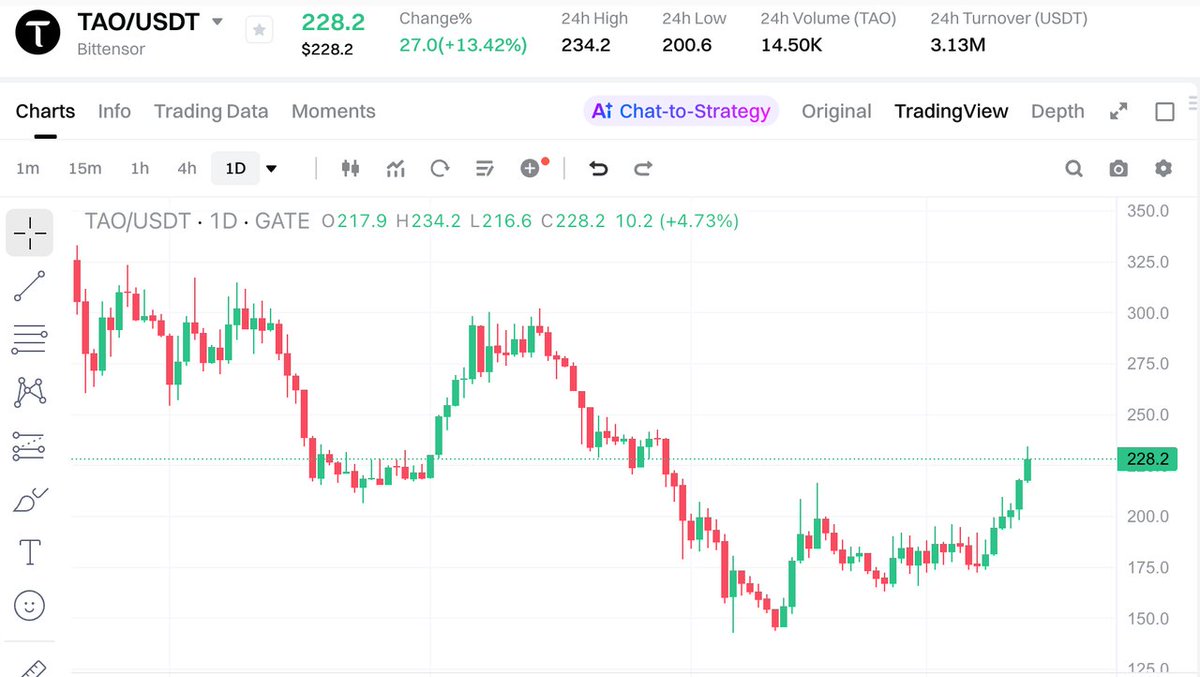 👀 $TAO 这条线一直都没断过,AI + Crypto 叙事回归最受益的玩家 Nvidia 开源 AI agent 平台, $TAO 领涨,目前在 $230 附近 Subnet (子网)生态刚完成一个里程碑,72B 参数大模型训练,完全去中心化、无白名单、任何人都能参与 翻译一下:TAO 子网有股票市场级基础设施,但有crypto级别的收益 这轮龙虾热为什么 TAO 有价值? - 技术面:突破$200–$220阻力区,完成双底形态,分析师目标指向$270+ - 应用场景:AI 时代的电力市场,谁贡献算力和模型,谁就赚钱,没有中心化巨头垄断 - 稀缺性:总量 2100 万,减半已过,其中 75%+ 锁仓,只要需求一上来,很容易拉升 - 机构认可:进入 AI sector顶级名单,与 FET 、 $NEAR 并列。另外,Grayscale、Bitwise 的相关 ETF 申请还在推进 类比 AI 时代的 BTC *非广告 *非投资建议 *DYOR