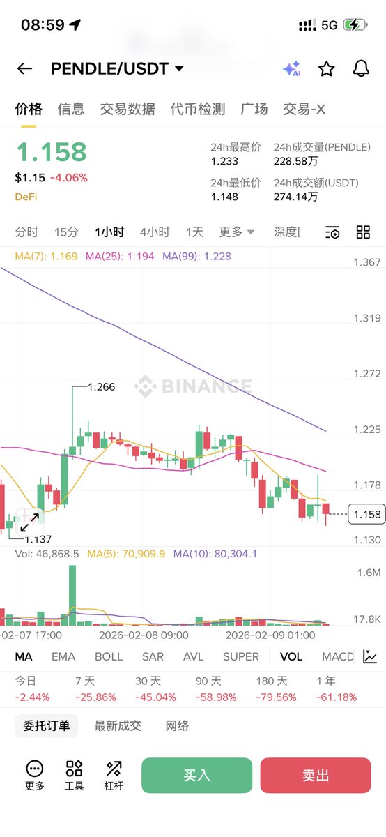 #BTC #pendle 🐼 熊猫深度研报:在极度恐慌中寻找 Alpha —— 为何 PENDLE 正处于周期性拐点? 过去 24 小时,我深入复盘了 BTC 的宏观基本面以及 DeFi 赛道龙头 $PENDLE 的链上数据。 多维度信号显示,我们正处于一个盈亏比极佳的左侧布局区间。 以下是我的详细数据复盘与交易逻辑拆解。 一、 宏观锚点:BTC 的“关机价”铁底逻辑 做山寨不能脱离大盘。 BTC 目前的下跌是“崩盘”还是“黄金坑”?数据给出了明确答案。 参考 图1 (BTC 宏观数据面板): 1. 市场情绪见底: 恐慌与贪婪指数跌至 9 (极度恐慌)。历史回测显示,个位数的恐慌指数往往对应着阶段性的价格底部,这是聪明钱开始贪婪的信号。 2. 硬核成本支撑: 当前 S19 XP 等主流矿机的关机价区间在 $55,172 - $61,657。 3. 技术面共振: 200周移动平均线 (200 WMA) 位于 $58,056。 结论: 除非发生系统性金融风险,否则 BTC 跌穿矿工成本线($55k-$58k)的概率极低。 大盘的下行空间已被锁定在 10%-15% 以内,这为我们布局高弹性的 PENDLE 提供了安全边际。 二、 周期分析:PENDLE 的杠杆清洗已完成 一个健康的上涨趋势,必须建立在杠杆出清的基础之上。 参考 图2 (PENDLE 2年期持仓量走势): • 泡沫挤干: 我们对比 2024-2025 年 PENDLE 价格在 $6-$7 高位时的持仓量(绿色峰值),目前的持仓量已经萎缩至峰值的 20% 以下。 • 盘面特征: 这意味着前期的高位套牢盘和投机性高倍杠杆已经经历了长达数月的彻底清洗。 目前的盘面极其“干净”,车重极轻,具备了发动新一轮行情的微观结构基础。 三、 主力动向:量价背离揭示吸筹痕迹 如果说大周期看位置,那么小周期就要看资金意图。 参考 图3 (PENDLE 48小时短线持仓量): • 背离形态: 在最近 48 小时内,PENDLE 价格维持在 1.15 - 1.18 的窄幅震荡区间,甚至有阴跌迹象。然而,合约持仓量 却逆势上涨,创出近期新高。 • 深度解读: 这是经典的“威科夫吸筹”特征。 价格不跌反涨,说明有主力资金在主动承接抛压,通过开多单的方式在底部悄悄囤积筹码。 压盘是为了吸更多的货,爆发只在顷刻之间。 四、 liquidity Map:基于清算热力图的点位部署 为了精确我们的入场点,我们需要利用清算热力图来寻找流动性。 参考 图4 (PENDLE 清算热力图): • 下方强支撑(买入区): 热力图显示,在 1.06 - 1.08 区间存在高亮度的黄色清算带。 这是主力最喜欢的“猎杀区”——向下插针清算散户止损盘,从而获取廉价筹码。 这里是绝佳的左侧挂单点。 • 上方目标位(卖出区): 在 1.70 - 1.80 区间,积压了大量的空头清算单。 根据“价格总是向流动性最大处移动”的原理,这将是本轮反弹的终极目标。 五、 熊猫老师的交易执行策略 基于“宏观铁底 + 筹码出清 + 主力吸筹”的三重逻辑,我制定了以下分批建仓策略。 此策略旨在最大化夏普比率,兼顾防守与进攻。 资金管理模型 (3-3-4 建仓法): • 杠杆建议: 3x - 5x (全仓模式,严格风控) 1. 头仓 (30%):现价 1.16 - 1.18 区间 • 逻辑: 确认主力吸筹信号,建立底仓防止踏空右侧行情。 2. 中仓 (30%):挂单 1.08 • 逻辑: 依托热力图强支撑位,博弈 BTC 回调时的插针机会,拉低均价。 3. 重仓 (40%):挂单 0.98 - 1.00 • 逻辑: 极端防守位。对应 BTC 测试 $58k 关机价的情景。这是“捡带血筹码”的黄金坑,也是整数关口心理防线。 风控防线 :0.85(止损点) • 逻辑: 跌破该位置意味着大周期逻辑破坏,必须严格执行止损,保留本金。 获利了结 : • TP1: 1.45 (减仓 50%,实现无风险持仓) • TP2: 1.75 - 1.80 (清仓,完成对空头流动性的收割) 写在最后: 投资不是预测未来,而是对概率的管理。 当所有数据都指向同一个方向时,我们需要做的就是克服恐惧,坚定执行。 (还有一个大的风险就是这篇文章突然火起来,买的人多了,庄家看到这篇文章就会突然改变布局策略) 数据来源:Coinglass, F2Pool, Binance Market Data (风险提示:本文仅代表个人投研观点,不构成财务建议。加密市场波动巨大,请对自己的本金负责。) #PENDLE #BTC #Crypto #TradingStrategy #Web3 #熊猫投研