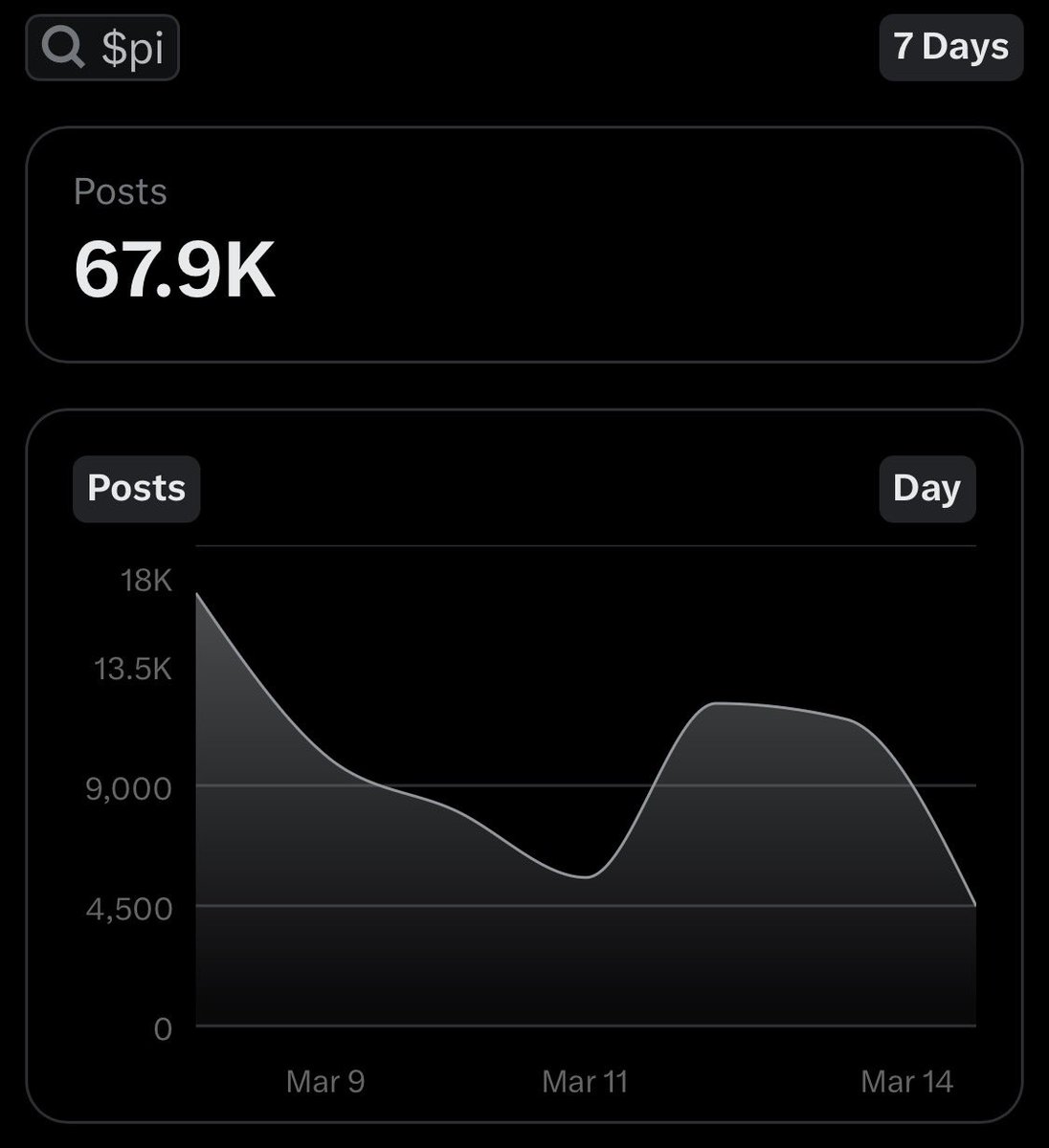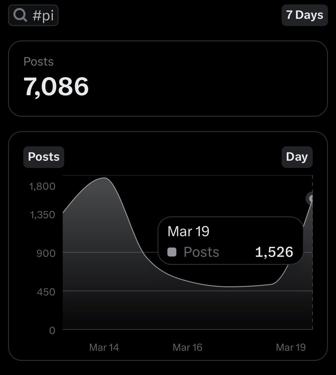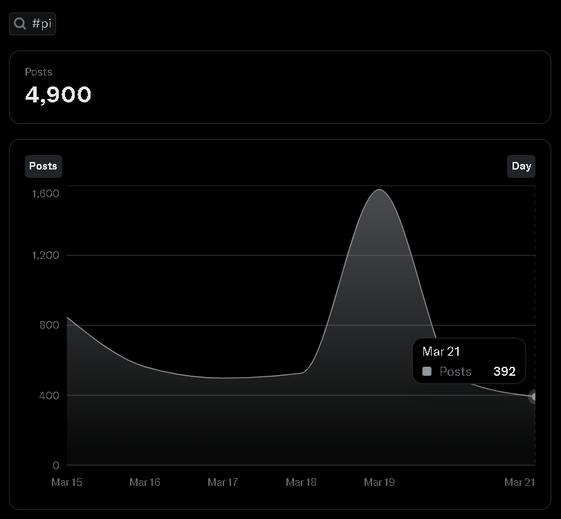 推特X的大數據全網文章標籤PI總數,一天不到500篇文章。