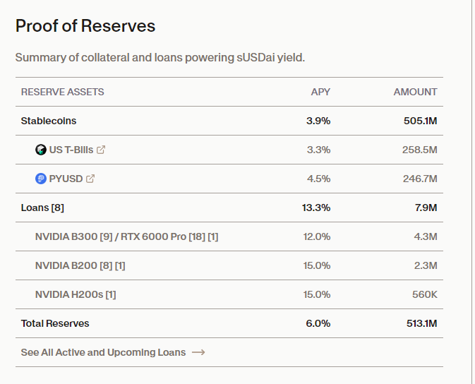 其二、虽然号称是 AI 项目,但是他们坚持了这么久,主要资产依然还是美国国债和 Paypal USD 吃利息,没有盲目*自己真的信了*,真去放一堆给显卡 GPU 贷款(目前仅 1.5%)。