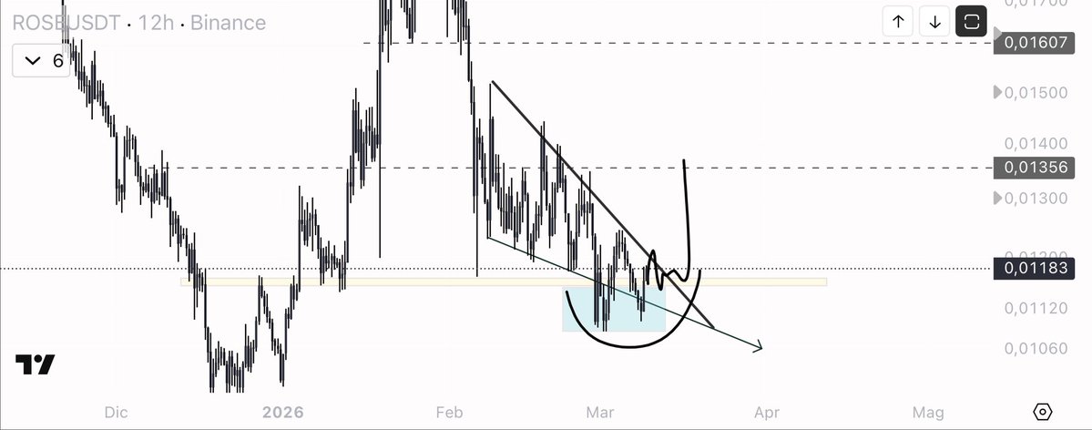 $ROSE In recent days, we have seen significant volumes coming in, a sign that something is really happening here. I am in no hurry to anticipate anything: I am waiting for a clear trigger and then I will play it. I don't care if it goes up or down, what matters is having confirmation and structure. When the market accumulates so much volume after a compressed phase, movement is bound to happen, and the only mistake would be to force it prematurely. Let's see how it develops and adapt accordingly.