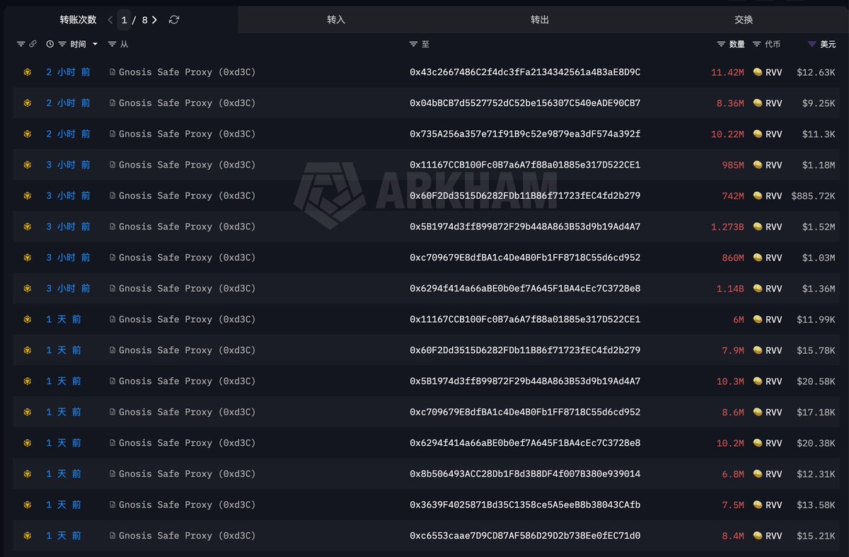 一共是有 8.6 亿枚的 $RVV (总量的 8.6%) 从项目方铸币合约转出后,在链上被抛售,致使 $RVV 严重下跌。