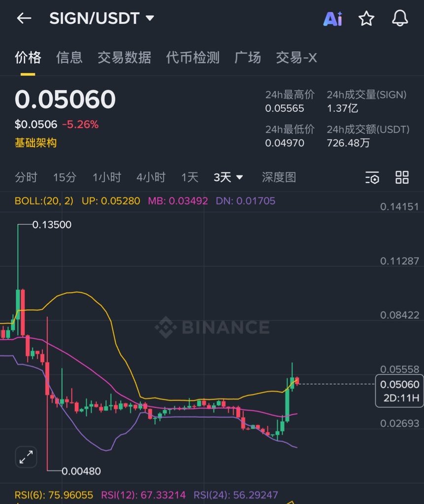 前几天市场上就开始有一些关于 $sign 的声音出现 比如我的男模基友 @BTCdong18 就当了一波预言家 而cz 前天的那一奶其实是一个意外 但是也拉了 现在来看应该陆续会有一些市场计划出现 因为cz看起来和这个项目的关系还不错 之前还转发了sign 老板yanxin 的推特 触底埋伏吧