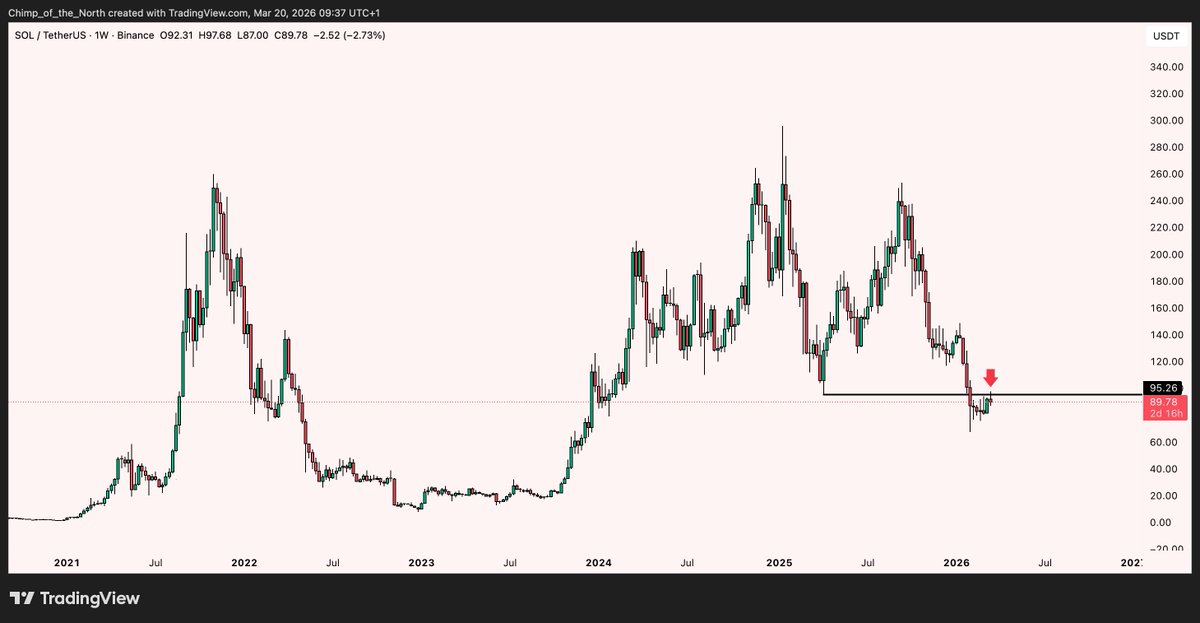 That's Jan 2026 fractal all over again on $SOL 👀 If this gets rejected, its all over...