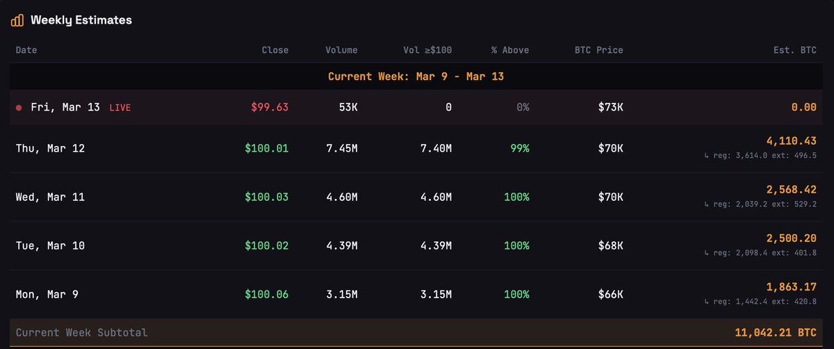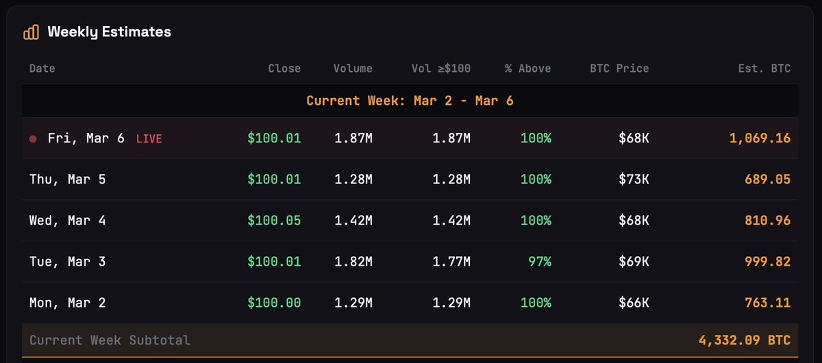 At its current trading volume, STRC implies buying power of ~1,940 BTC/day.