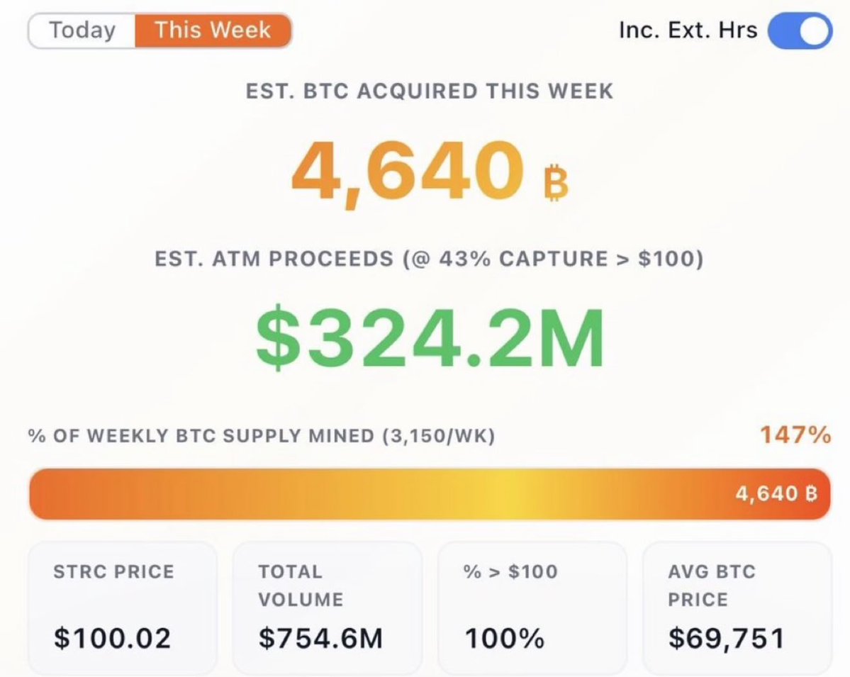 For example, on March 9, 2026, Strategy sold about 2.4 million STRC shares, raising roughly $377 million, and then purchased about 1,420 BTC.