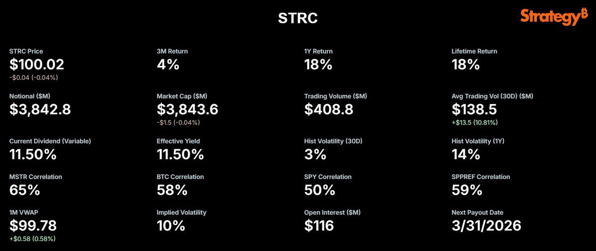 STRC is a preferred share issued by Strategy with a $100 par value that currently pays about 11.5% annual yield, distributed in monthly cash dividends.