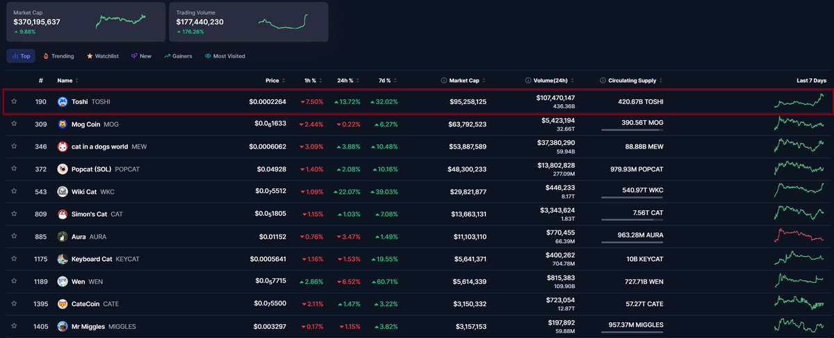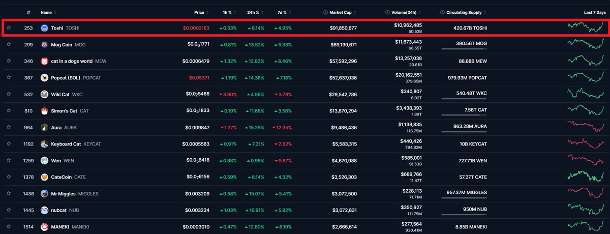 Your daily reminder $TOSHI still is the number 1 cat memecoin in crypto