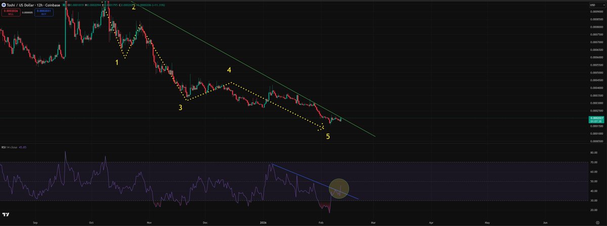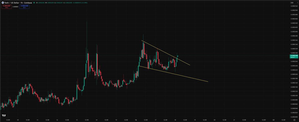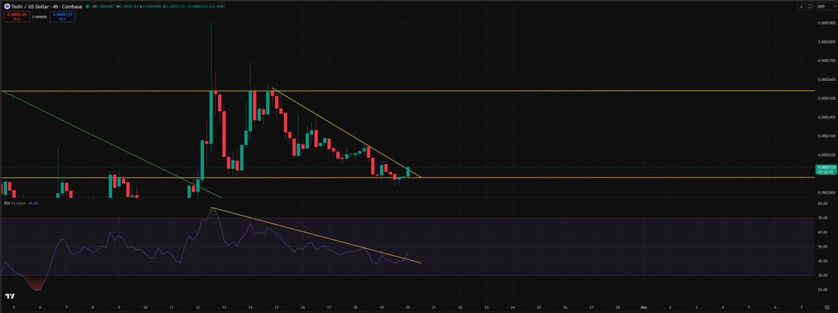 On the LTF for $TOSHI, we are retesting the downtrend slope once again