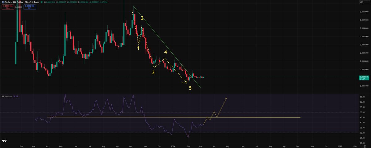 Yet to confirm a full on reversal, but looking good for $TOSHI for the remainder of this month